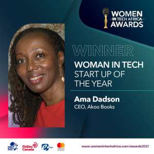 Accra, 03 August 2021 – Akoobooks Audio has won the Woman in Tech Startup of the Year award 2021, given by Women in Tech Africa – the continent’s premier organization with a focus on entrepreneurship expansion and multiplying the numbers of females in technology, especially in Africa. (http://www.womenintechafrica.com/)